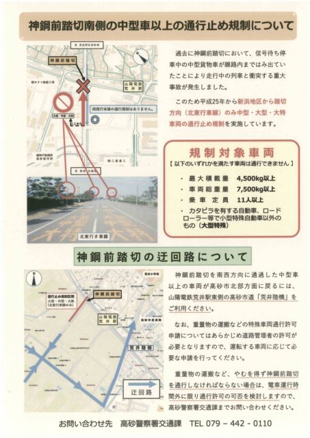 【高砂警察署より】神鋼前踏切南側の中型車以上の通行止め規制について|高砂商工会議所